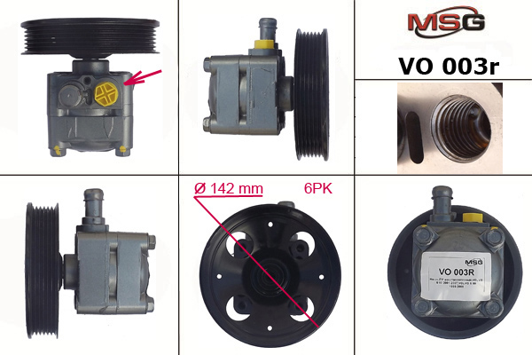 Насос гидроусилителя руля Volvo S60 I 2000-2010, S80 I 1999-2006, V70 II 2000-2007, XC70 CROSS COUNTRY 2002-2007 соединение шланга под планку, шкив 130 мм.